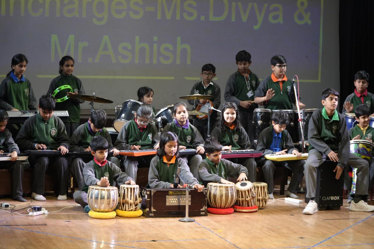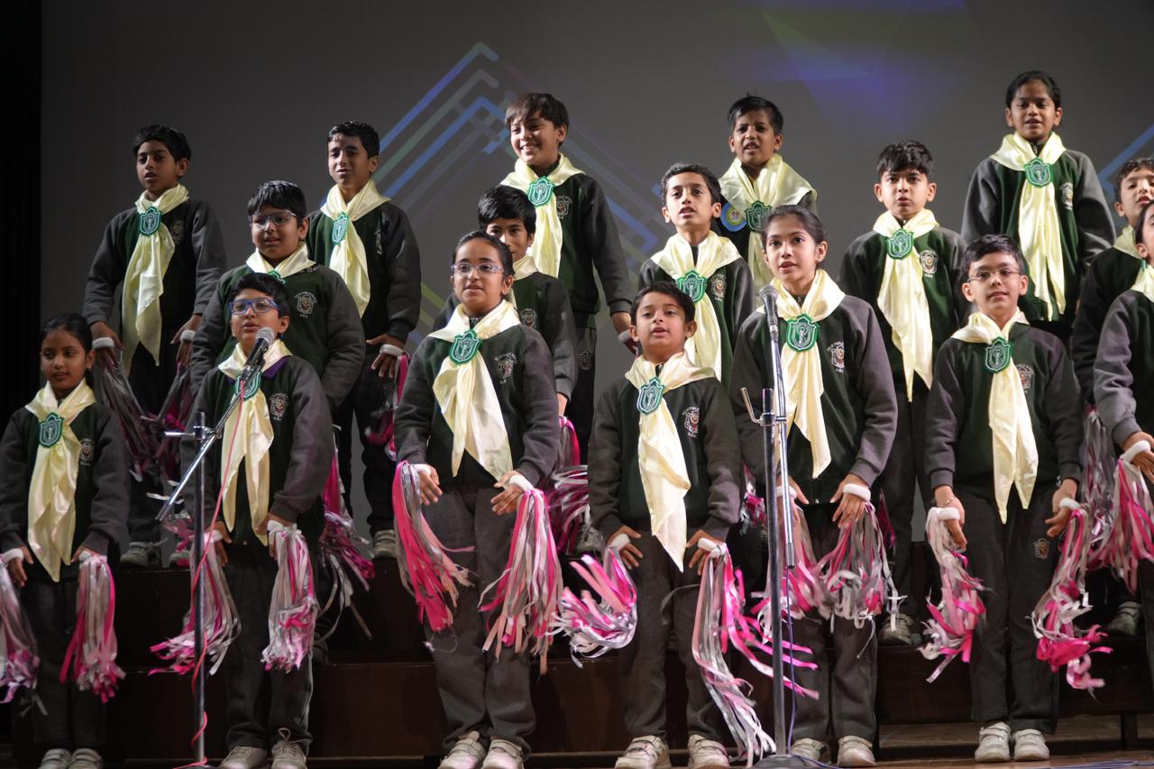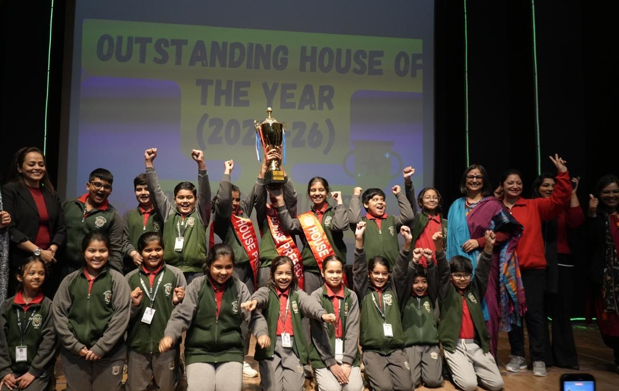 Adding charm and rhythm to the celebration, the students captivated the audience with melodious song performances, graceful dance presentation, and soulful instrumental music. The occasion was graced by our honorable Principal Ma’am, who applauded the enthusiasm and talent of the young learners and felicitated the winners of the Abacus, Yoga, and Chess Competitions. The celebration concluded on a proud note with Yamuna House lifting the Rolling House Trophy for the session 2025–2026, marking a memorable moment of excellence and teamwork.